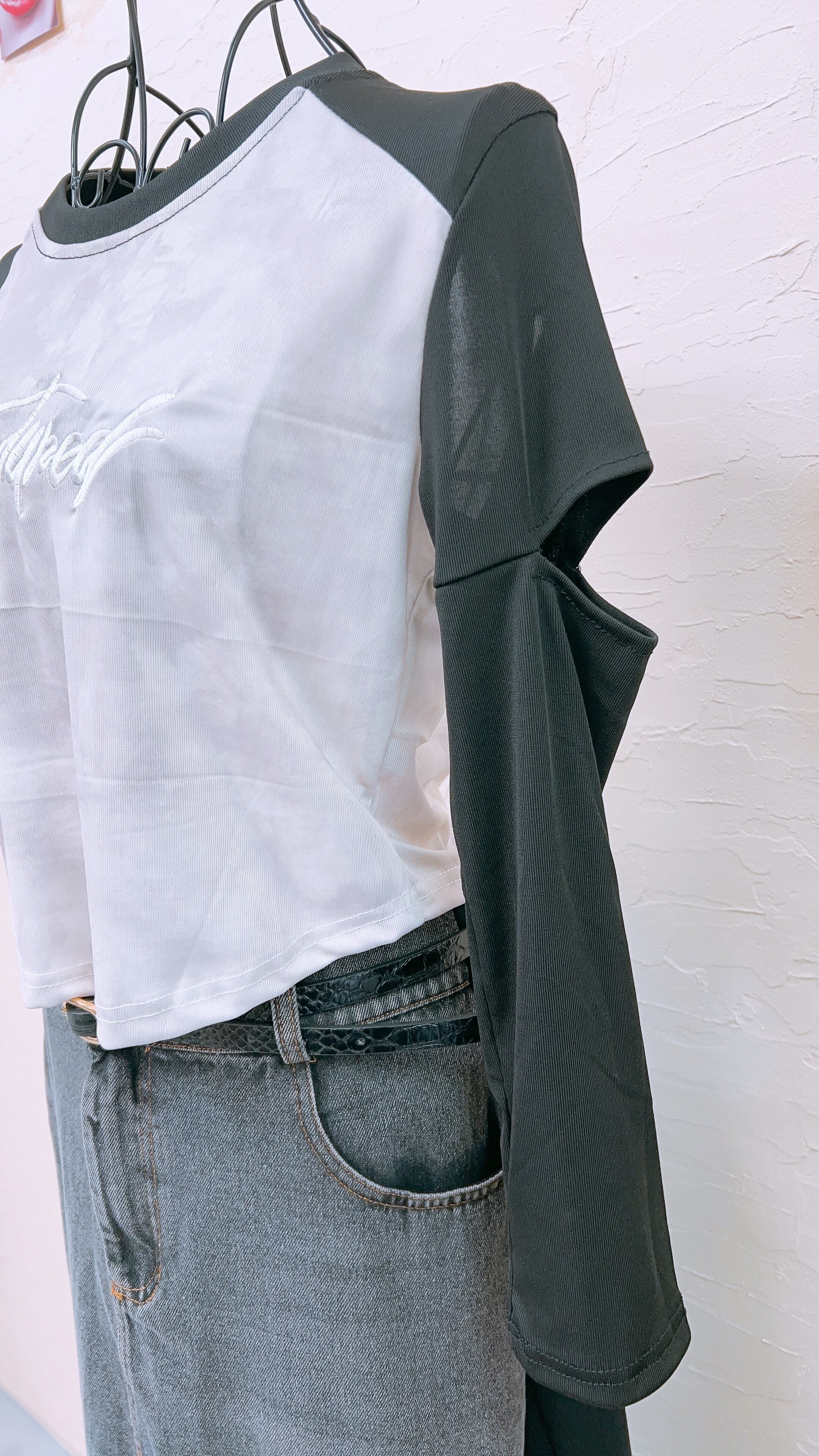 二の腕部分がチラッと開いていて、カジュアルながらも女性らしさが♡